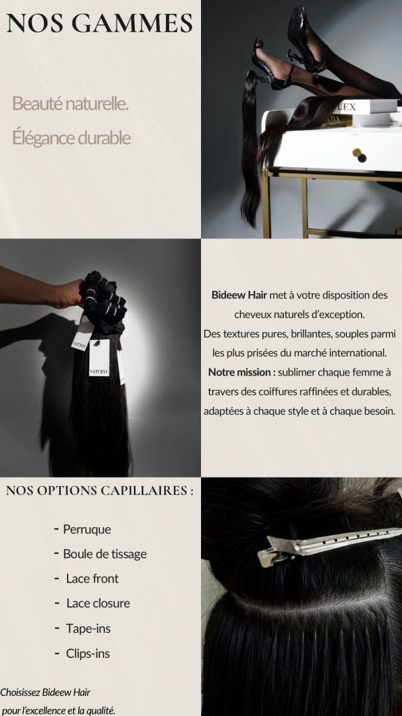 Vente d’extensions de cheveux de qualité premium.